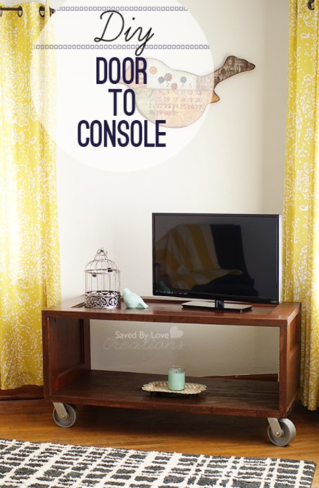 An old door is a gem just waiting to be polished by your creativity! In this project, the door becomes an amazing TV stand. The open storage adds design interest too and wheels make it movable so you can find that perfect spot for its new life.
